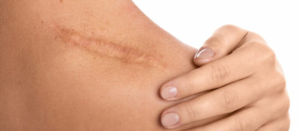 Une cicatrice est une trace qui reste sur le corps à la suite d’une chute, une opération, une chirurgie, un piercing, une blessure, de l’acné, une brûlure…