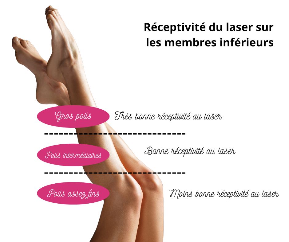 La réceptivité du laser épilatoire sur les jambes dépend de plusieurs facteurs. Tout d’abord, la couleur des poils est un élément central. L’épilation au laser fonctionne mieux sur les poils bruns et foncés, car la mélanine du pigment foncé absorbe plus efficacement la lumière du laser.