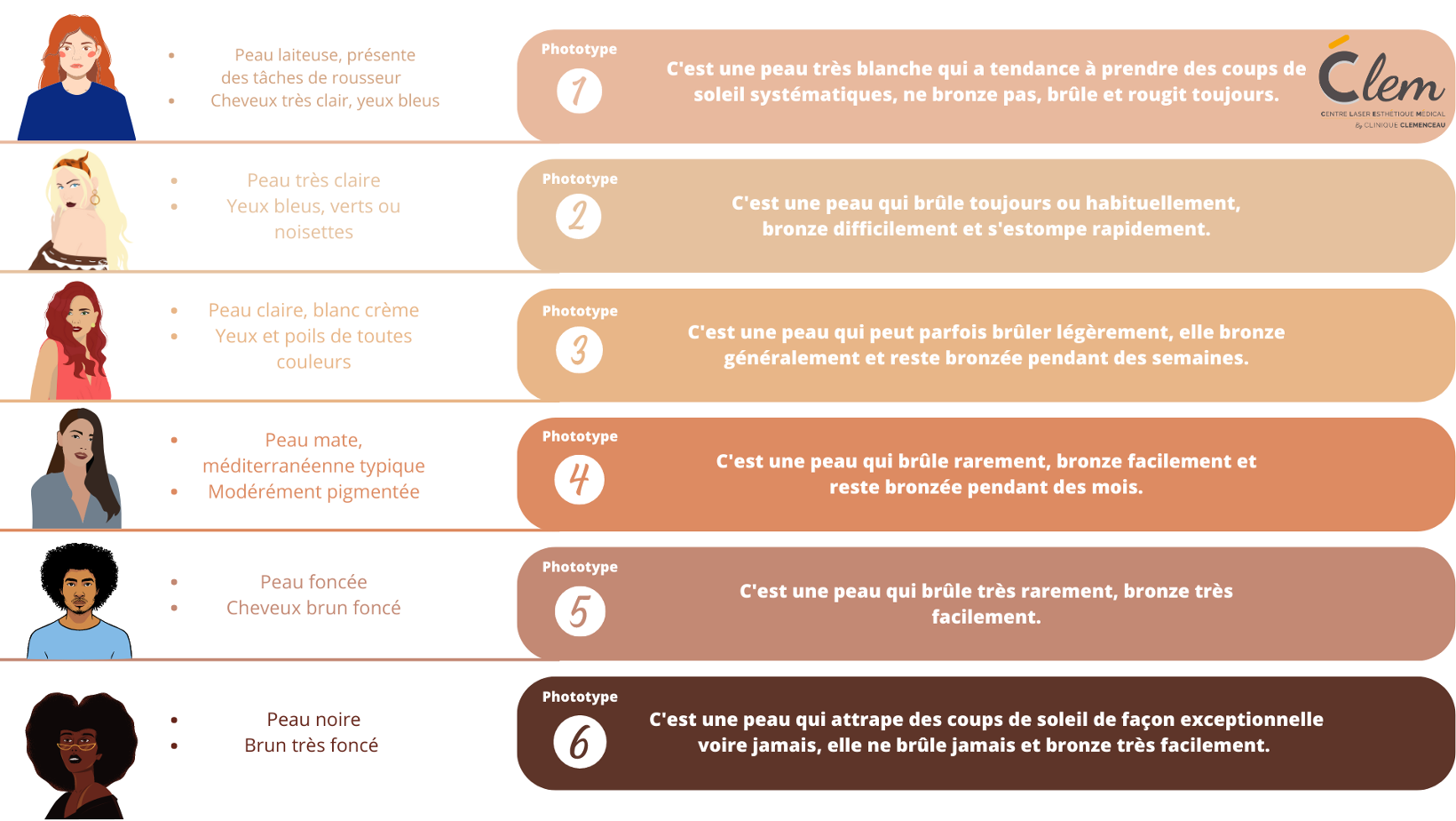 Découvrez les différents phototypes de peau :