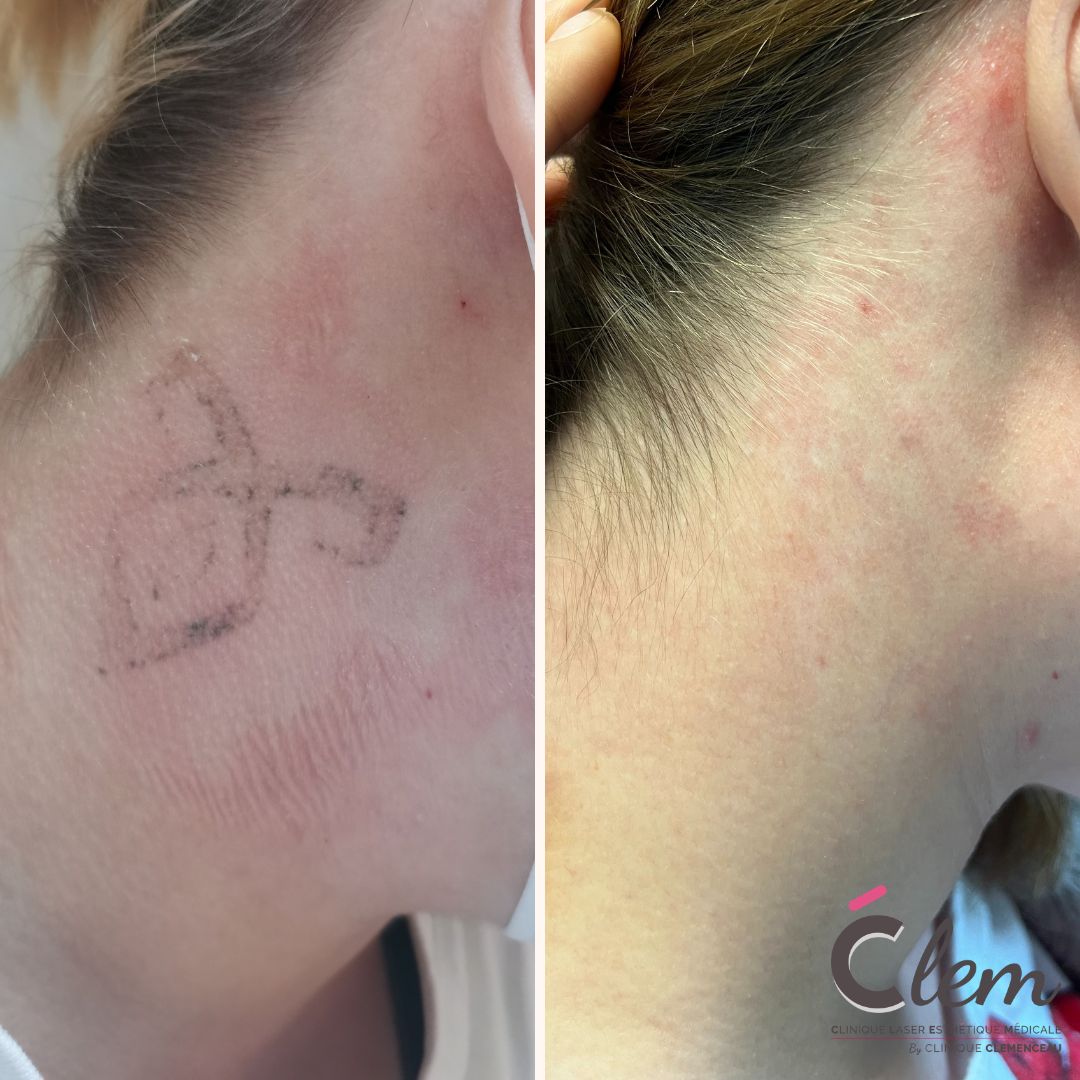L’encre est décomposée en de minuscules particules qui seront éliminées par le processus naturel du corps. En plus de son action d’élimination du tatouage, le laser stimule la production de collagène, ce qui favorise la régénération de la peau traitée.