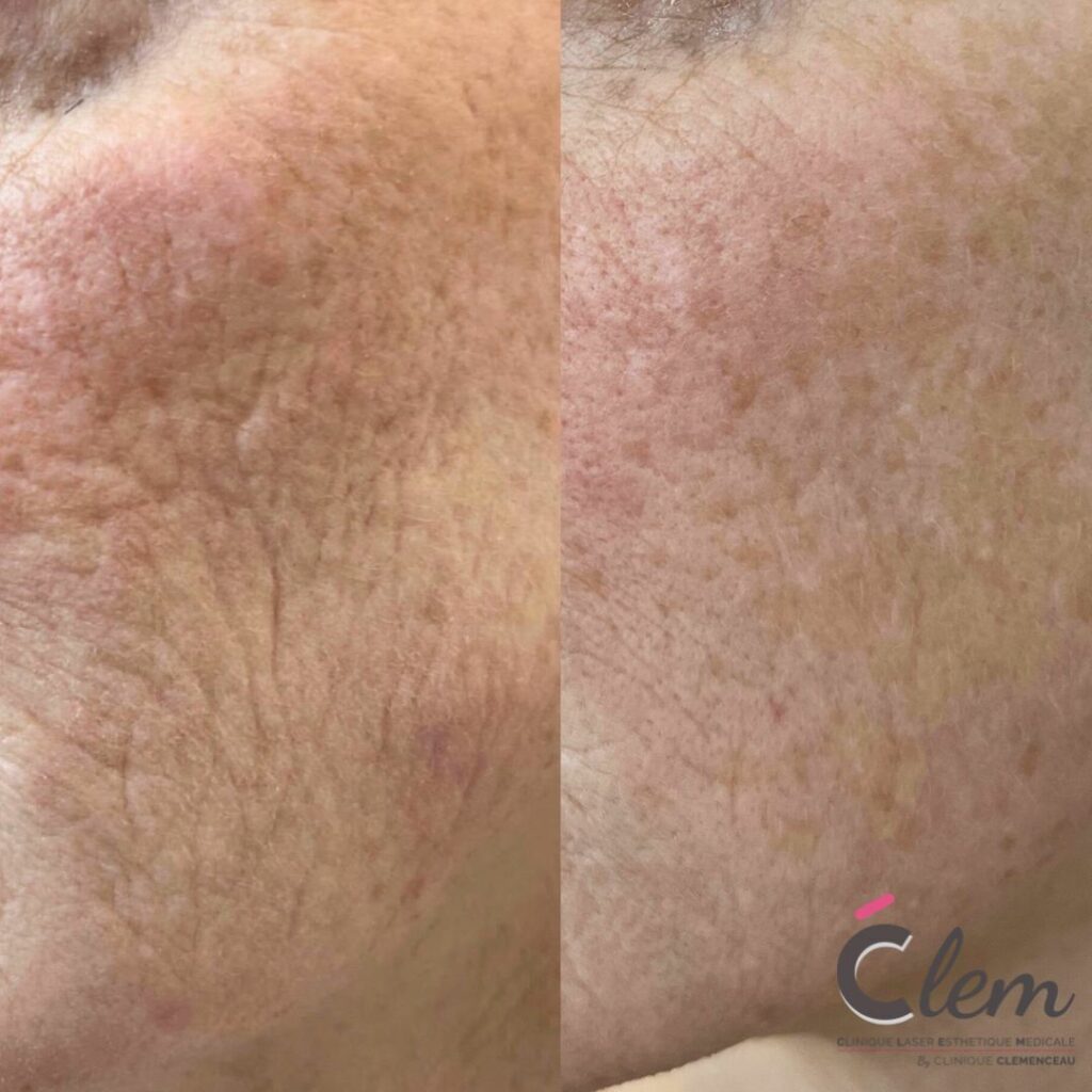 Après le soin, la peau est rosée et légèrement sensible. Quelques petits points hémorragiques sans conséquences peuvent persister quelques heures.